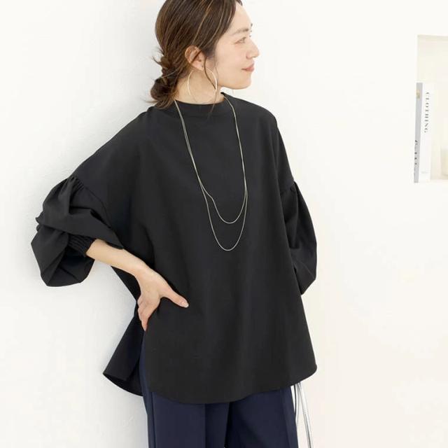 【ボタンとシャーリング使いできちんと着映える2wayブラウス】