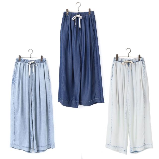 【10%OFF 送料無料 レディース 大人】Hunch(ハンチ) テンセル デニム ワイド パンツ