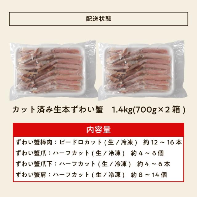 商品名:カット済み生本ずわい蟹1.4kg/700g×2箱