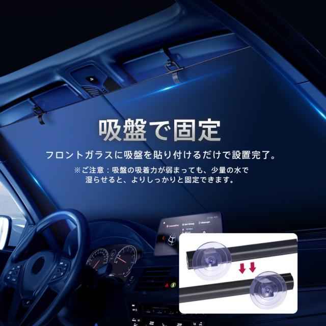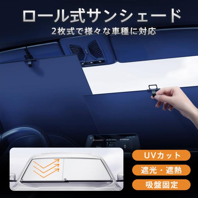 サンシェード 車 フロント 伸縮 車用 ロール式 遮光 遮熱 日よけ 折りたたみ UVカット 紫外線カット 収納便利 簡単設置 吸