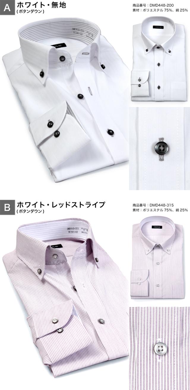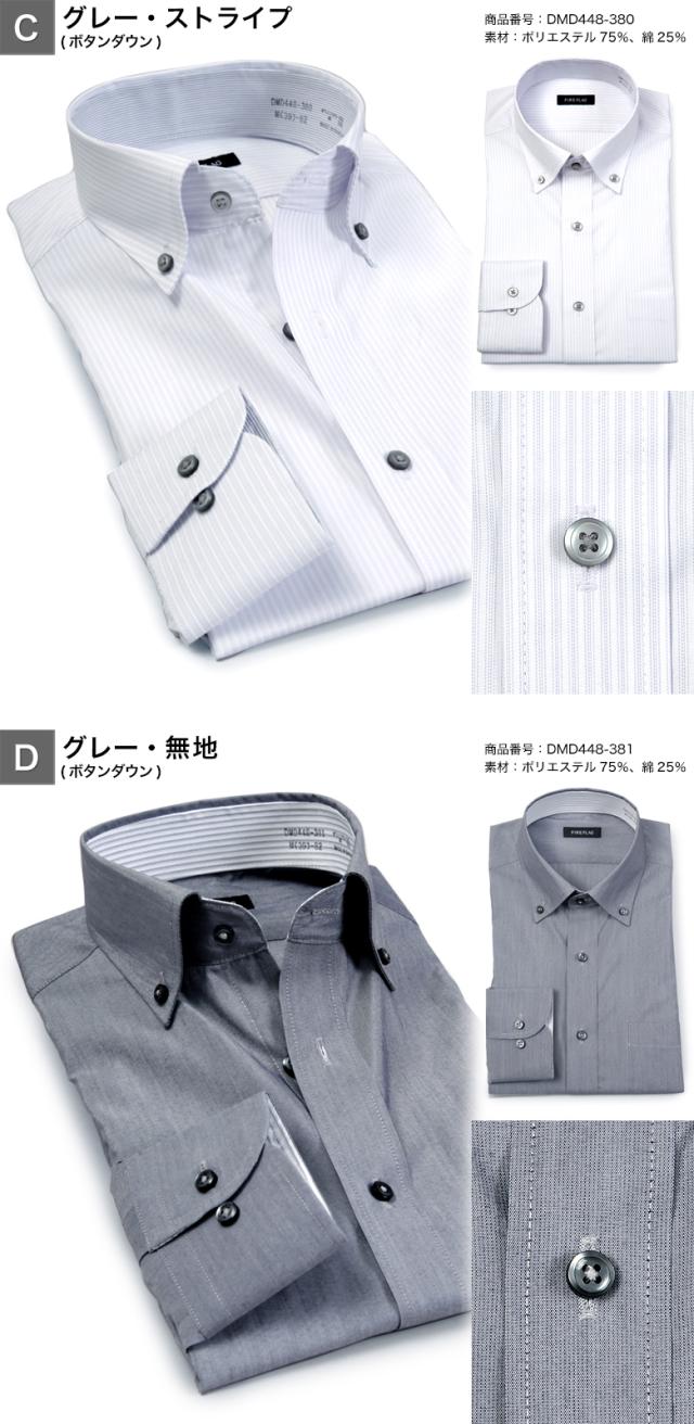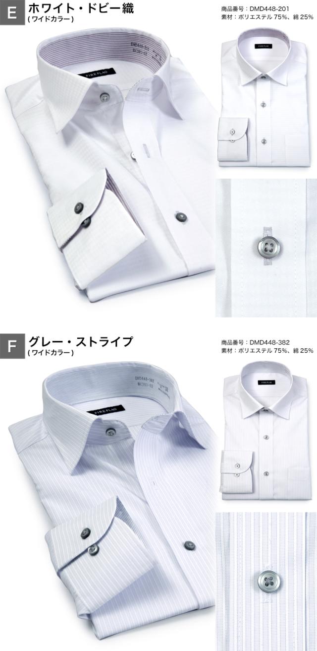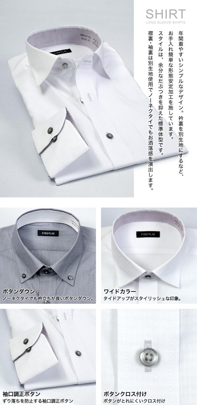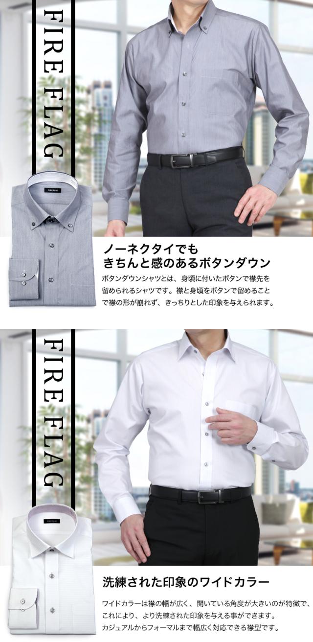FIRE FLAG ワイシャツ メンズ 長袖 形態安定 ドレスシャツ ノーアイロン ボタンダウン ワイドカラー 襟裏切り替え COOL BIZ クールビズ オシャレ 春夏秋冬