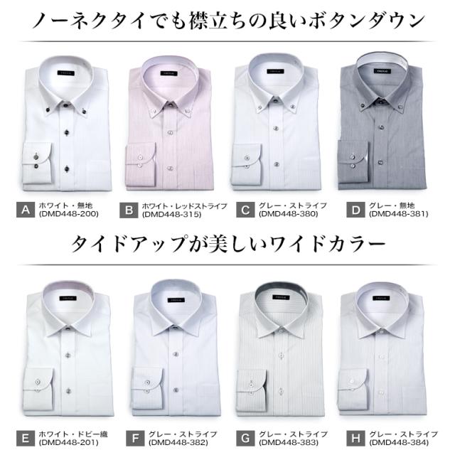 | ▼ボタンダウン 【A】ホワイト・無地(DMD448-200) 【B】ホワイト・レッドストライプ(DMD448-315) 【C】グレー・ストライプ(DMD448-380) 【D】グレー・無地(DMD448-381) ▼ワイドカラー 【E】ホワイト・ドビー織(DMD448-201) 【F】グレー・ストライプ(DMD448-382) 【G】グレー・ストライプ(DMD448-383) 【H】グレー・ストライプ(DMD448-384) |