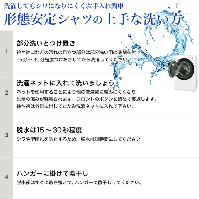 さらに、ご家庭で洗えるウォッシャブル仕様でお手入れも簡単。通勤はもちろん、出張や旅行にも活躍します。ベーシックで着回しやすく、1枚あると重宝する万能ドレスシャツです。