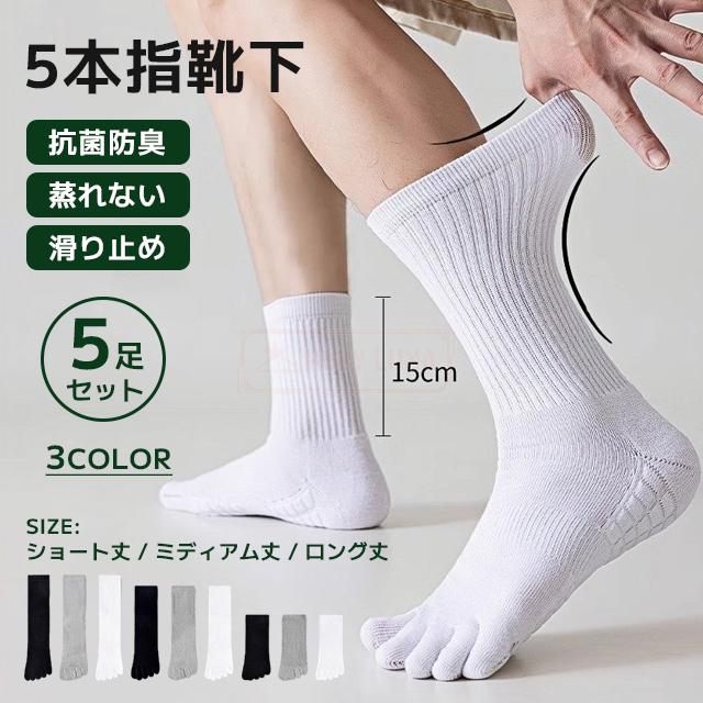 最安挑戦 春新作 送料無料 新作 5足セット 5本指ソックス メンズ 5本指靴下 蒸れない 滑り止め ソックス 弾力性 綿靴下 春秋 無地 吸汗性 スポーツソックス 通気性良好 抗菌防臭 消臭 臭わない ショート丈 ミディアム丈 ロング丈
