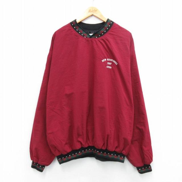 古着 長袖 ナイロン ジャケット メンズ 90年代 90s NEW HAMPSHIRE 大きいサイズ Vネック USA製 エンジ他 26feb12