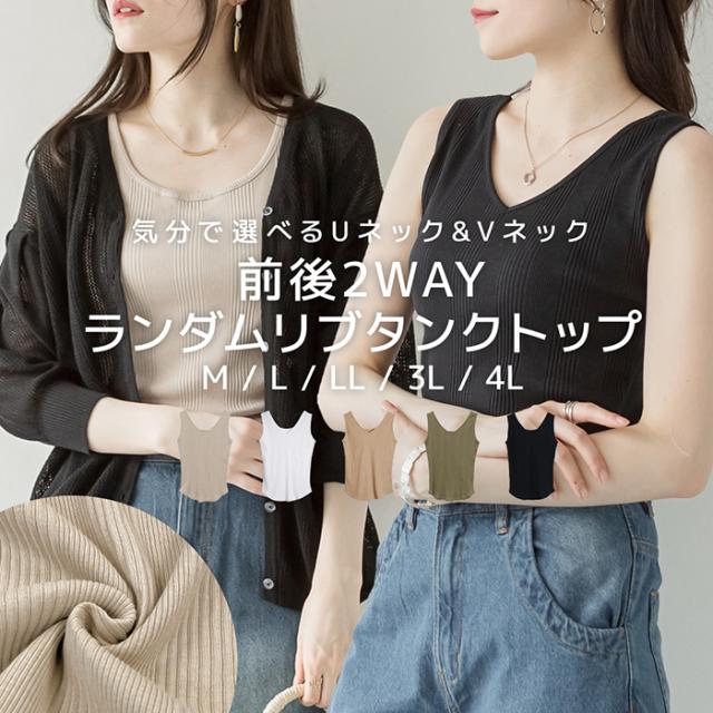 前後2WAYランダムリブタンクトップ レディース インナー トップス 重ね着 カットソー 袖なし ATK-0022