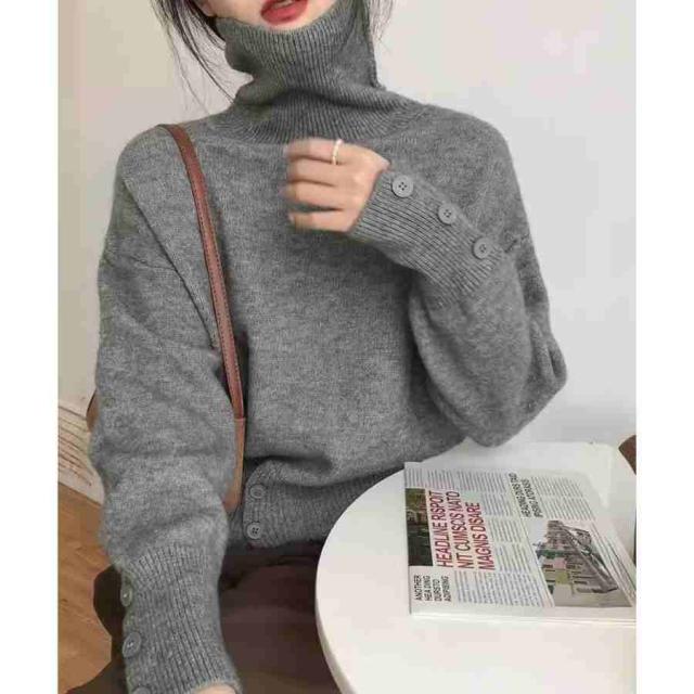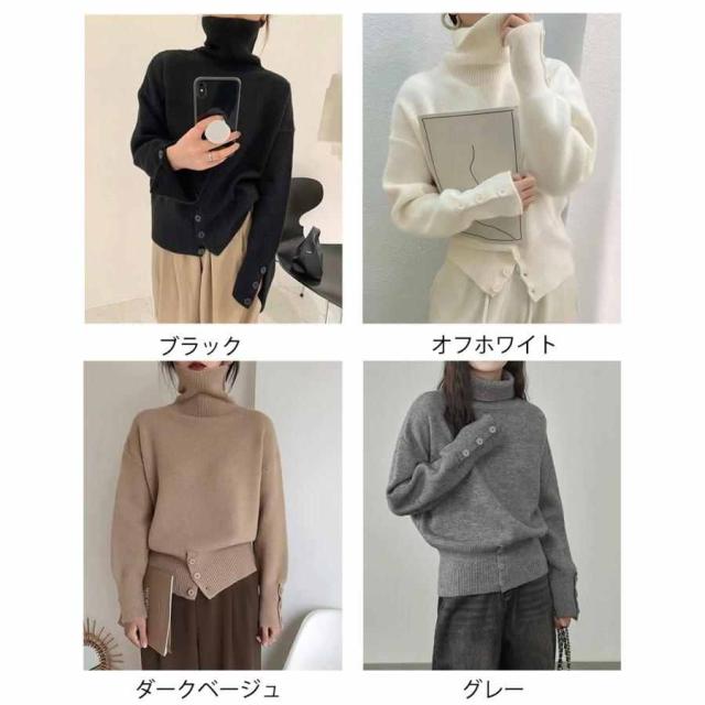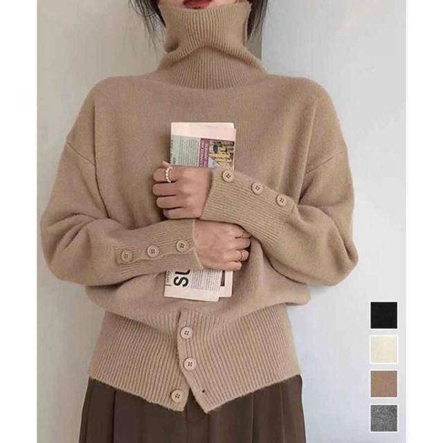 ボタンデザインがアクセントになったタートルネックニットプルオーバー。