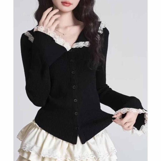 Vネックラインと袖口にあしらったレースが、デコルテや手元を上品に演出。