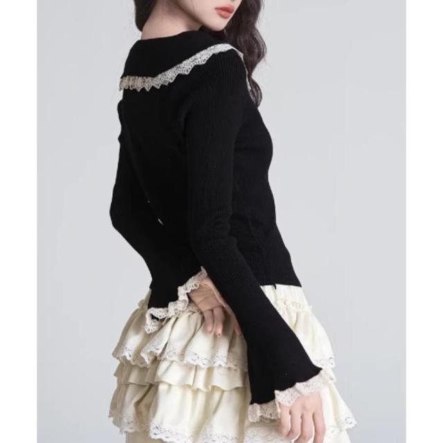 繊細なレース使いが目を惹く、フェミニンムードたっぷりのリブニットトップス。