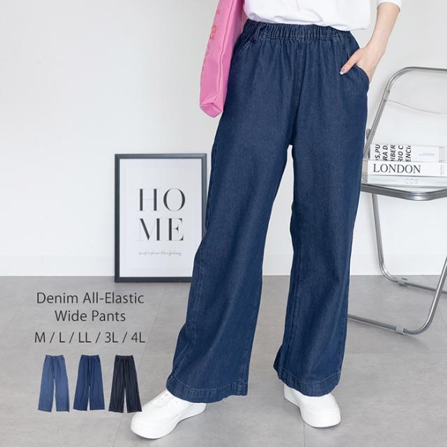 デニムオールゴムワイドパンツ レディース ボトムス ズボン ジーンズ 秋新作