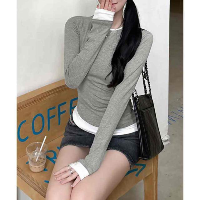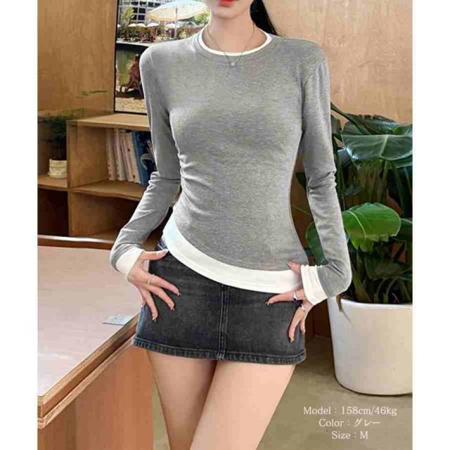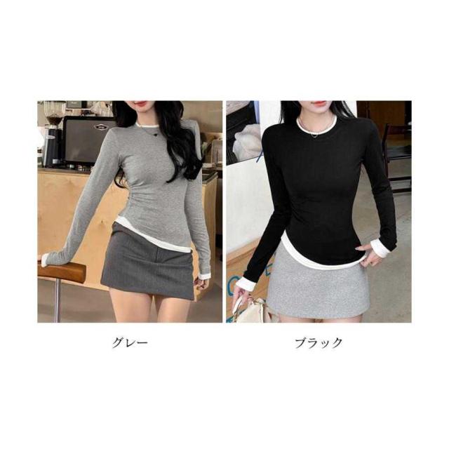 レイヤード風デザインでオシャレ見え間違いなしの長袖Tシャツ。
