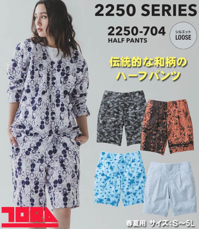 [6月上旬入荷先行予約]作業服 祭事 祭り 飲食店 行事 春夏 TORAICHI 寅壱 トライチ 数量限定 和柄 ハーフパンツ(裏付) 2250-704 サイズ4L・5L 2026年春夏新作 2250シリーズ