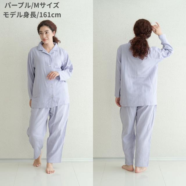 着る保湿クリーム 前開きテーラーカラーパジャマ D93103-50 綿100% 保湿 ルームウェア 上下セット 長袖 プレゼント ギフト レディース
