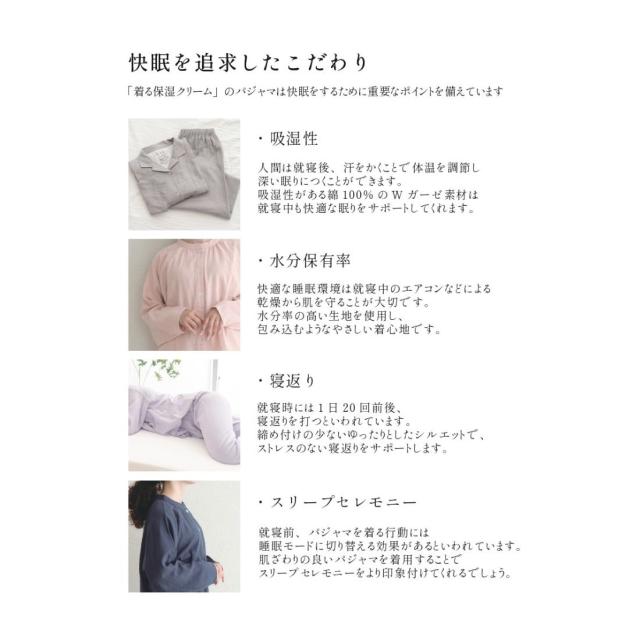 眠っているあいだのエアコン乾燥から肌を守ることは、心地よい睡眠環境づくりに欠かせません。水分率の高い生地がしっとりと肌になじみ、包まれるような安心感のある着心地です。