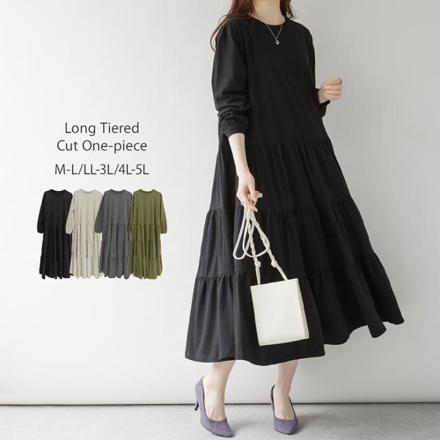 ロングティアードカットワンピース 長袖 0422