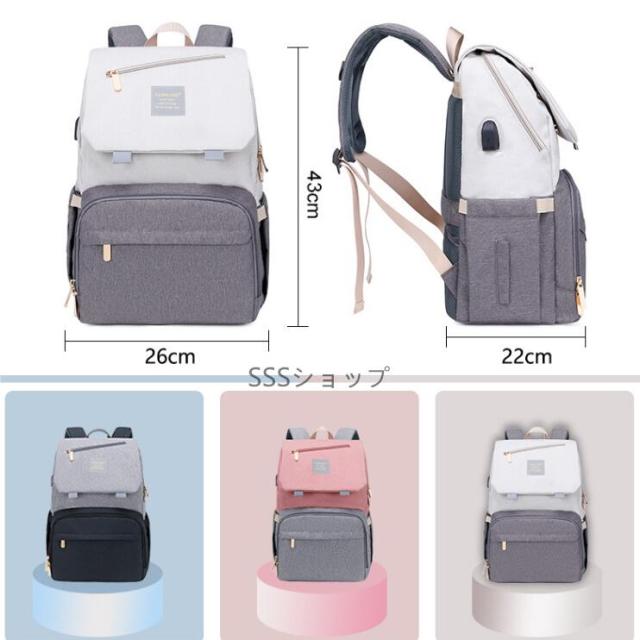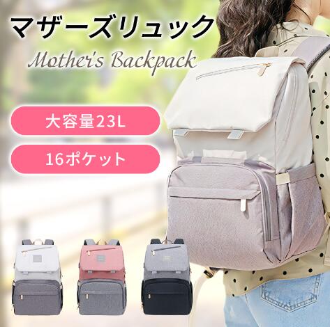 マザーズリュック (大容量 / 16のポケット) マザーズバッグ リュック 軽量 多機能 USBポート付き 出産祝い リュックサック プレゼント
