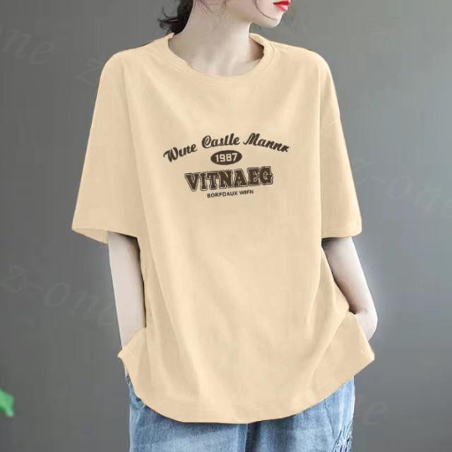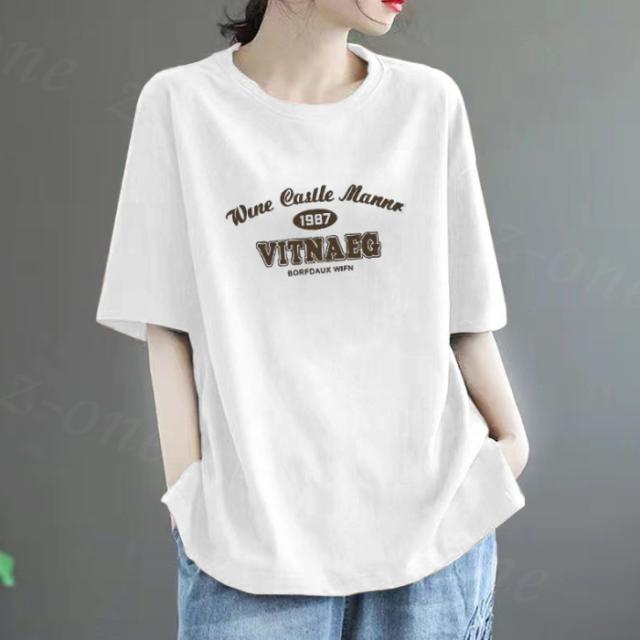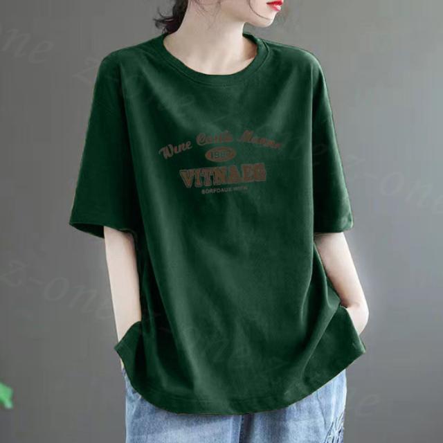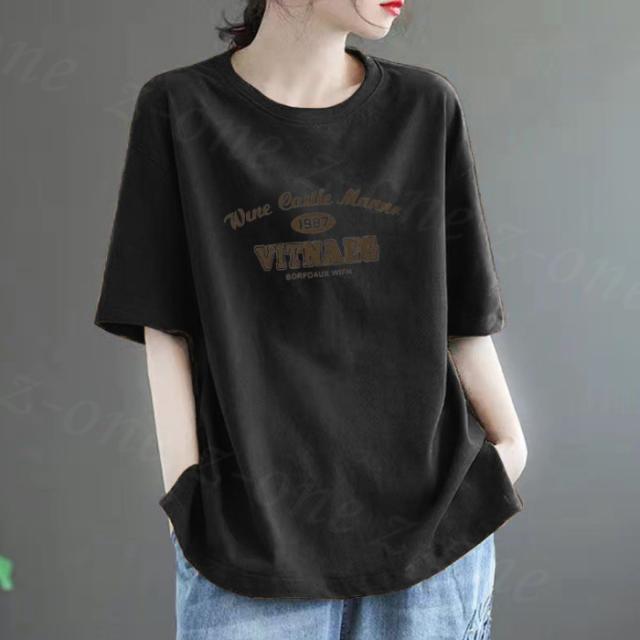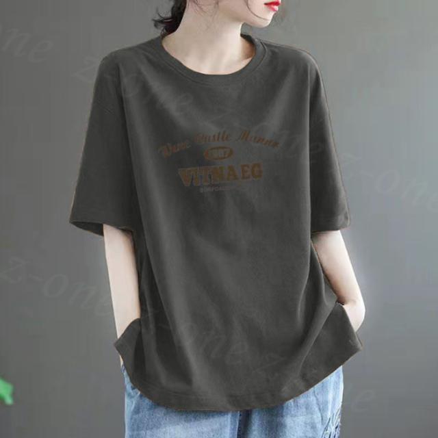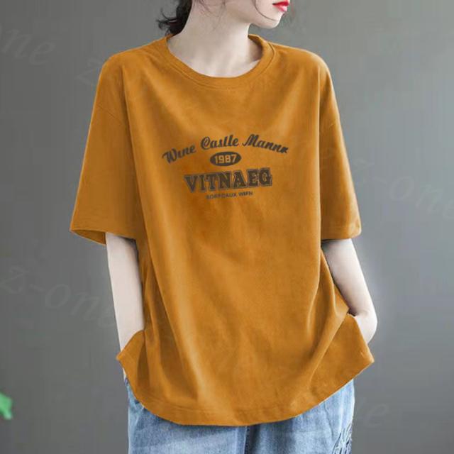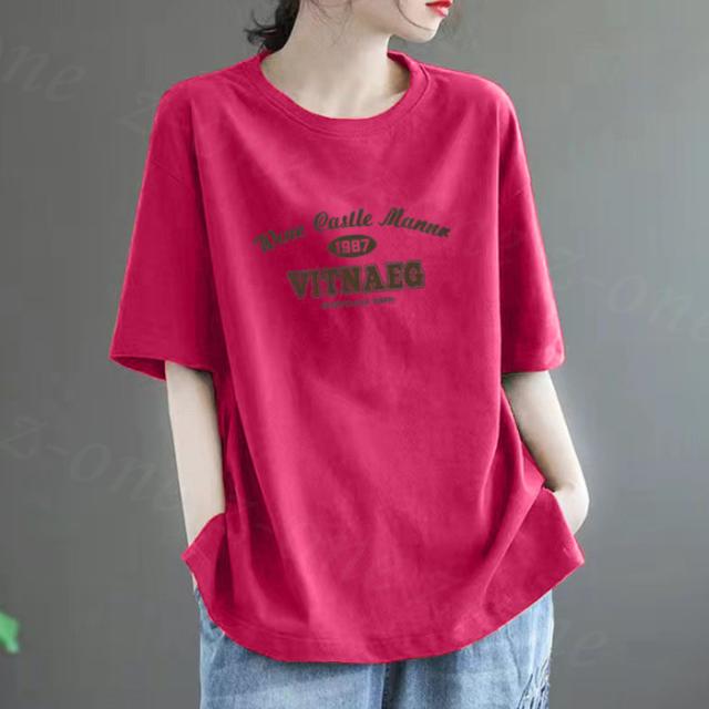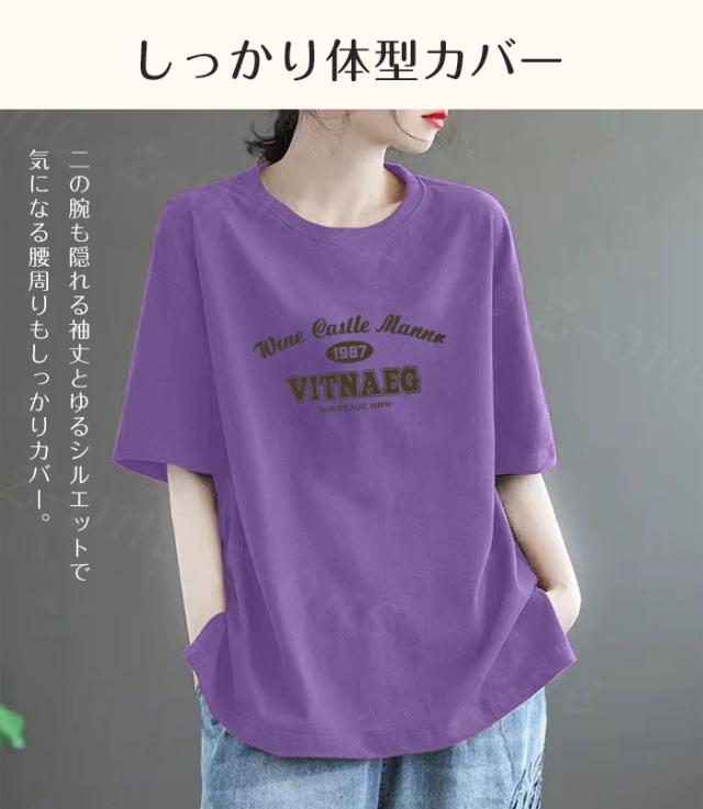 【1点1,150円!2点購入&クーポンで】半袖Tシャツ 春新作 ロングTシャツ コットン100% ラウンドネック ロゴ ゆったり ロング丈 可愛い 韓国風 レディース トップス 綿 カットソー 長袖 カジュアル tシャツ 通勤 通学 肌触りいい 体型カバー 入学式 入園式