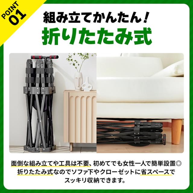 面倒な組み立てや工具は不要♪箱から取り出して広げる→手すりの取り付けだけで準備完了(ページ内動画参照)!女性や初心者でもすぐに始められ、家族全員の毎日の運動が手軽に続けられます♪かんたん設置できるのでプレゼントにも最適です🎁