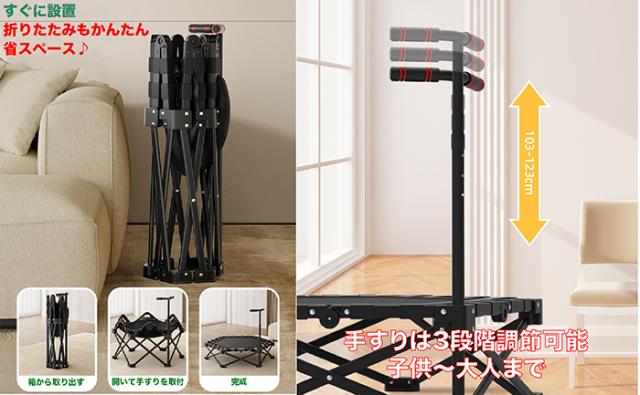 【3段階調整の手すり】 手すりの高さは3段階に調整可能♪子どもから大人まで安全かつしっかり運動をサポート♪親子で楽しくジャンプ♪