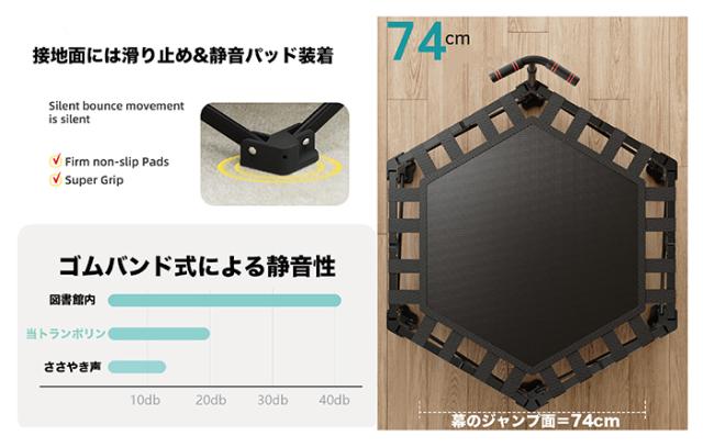 【静音設計であんしん】幕面には高品質ゴム&衝撃吸収パッドを脚部に採用し、ジャンプするたびに静かを実感♪マンションや集合住宅での使用も気にならず、周囲に配慮したストレスフリーな設計です♪