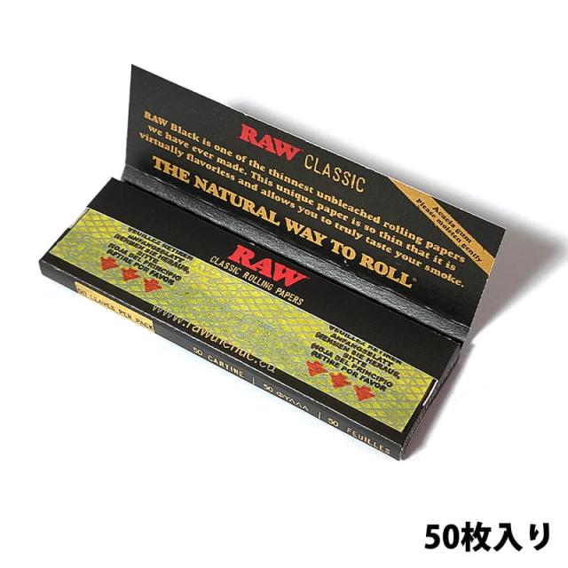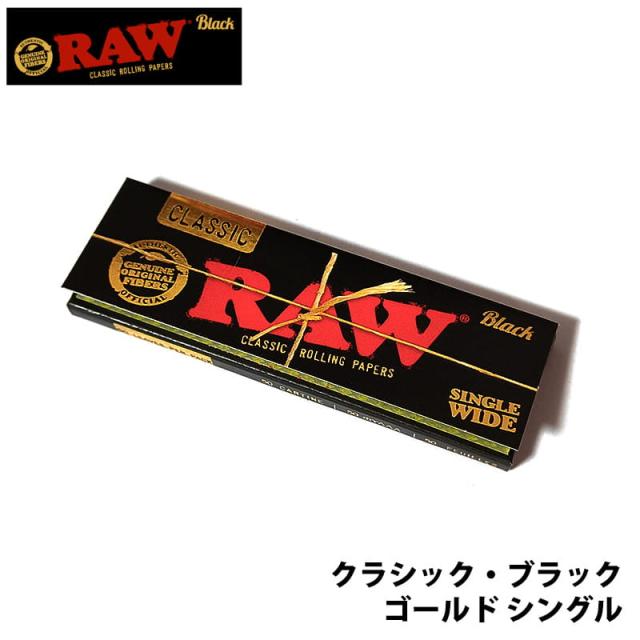 ローリングペーパー RAW シングル クラシック ブラックゴールド 50枚入り 無添加 手巻きたばこ シャグ シングルワイド タバコ 紙 ロウ 喫煙具 メンズ CLASSIC BLACK GOLD