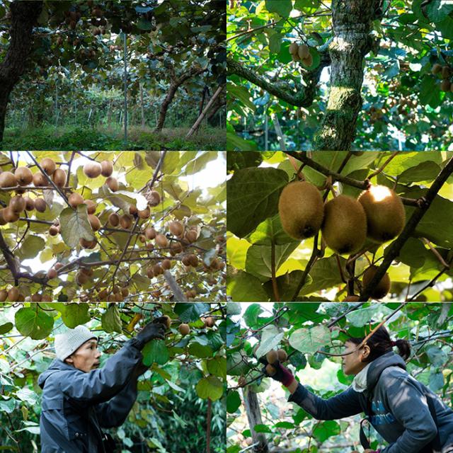 こちらのキウイは、持続可能性を考慮した農園にて大切に育てられました。木が本来持つ持続可能な生産能力を超えないようにするため、自然に土へかえる有機物を堆肥として使用しています。キウイを栽培する際に必要となる花粉も、購入した花粉ではなく花から直接採取したのもの使用し、環境に配慮しながらキウイを生産しています。また、長年使われていなかった圃場や畑を開墾するなど、より持続可能的なオーガニック農園です。下にご紹介する写真は、こちらのキウイを育てている実際の農家さんと農園の風景です。