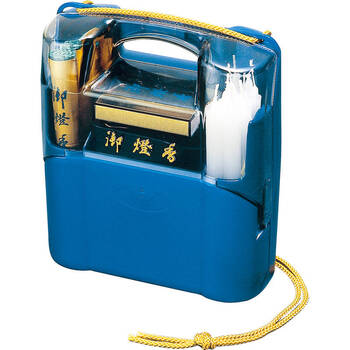ケース:60×137×160mm、風防ライター、2号ローソク×10本、線香×3束、マッチ、吊りヒモ