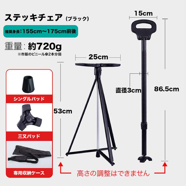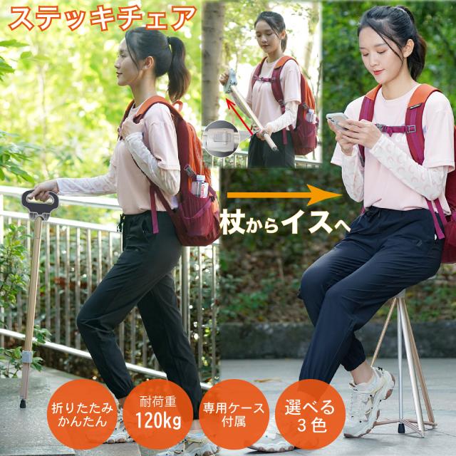ステッキチェア 折りたたみ杖 椅子になる杖 軽量アルミ製 高耐荷重 155〜175cm対応 高齢者 歩行補助 散歩 行列待ち 初詣 テーマパーク スポーツ観戦 ゴルフ観戦 待ち時間 並び 専用収納ケース付 3色展開
