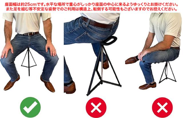 座面幅は約25cmです。水平な場所でしっかり重心が座面の中心にくるようゆっくりとお掛けください。構造上、足を組むなど不安定な体勢は転倒する可能性がございますのでお控えください。 着座の際、個人差により多少のグラつきを感じる場合もございます。あらかじめご了承ください。