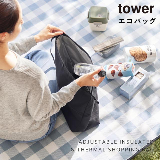 量によって調節できる保冷&保温ショッピング エコバッグ タワー タワー 山崎実業 tower 保冷 エコバッグ 折りたたみ ショッピングバッグ おしゃれ モノトーン ライトグレー ブラック 10656 10657