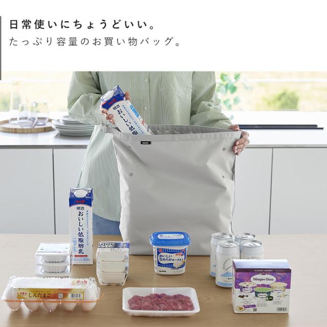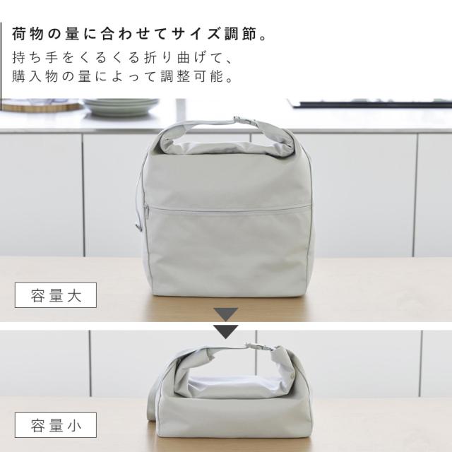 荷物の量に合わせてサイズ調節ができる、日常使いにちょうどいい保冷保温エコバッグです。コンパクトに折り畳めるため、持ち運びやすく便利。