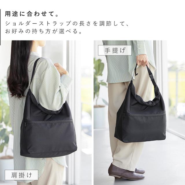 ショルダーストラップは長さ調節が可能で、肩掛け・手提げのどちらにも対応。