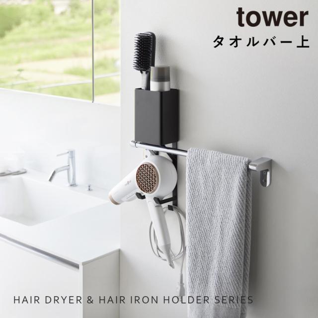 タオル掛け上ドライヤー&ヘアーアイロンホルダー タワー タワー 山崎実業 tower ドライヤー ホルダー タオル掛け ドライヤー収納 おしゃれ モノトーン ホワイト ブラック 10545 10546