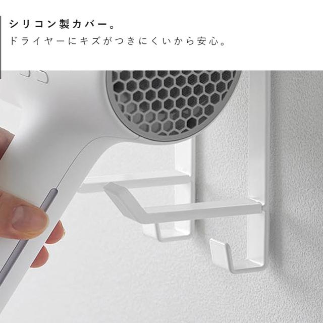 ホルダー部はシリコーン製カバー付きで、ドライヤーにキズがつきにくく安心。