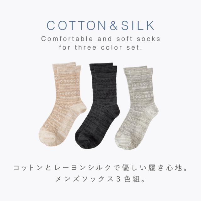 靴下 メンズ ゆったり シルク コットン 綿 3色組 25-27cm 日本製 男性 シニア ビジネス 履き口ゆったり 3足 まとめ買い やわらかコットンメンズソックス