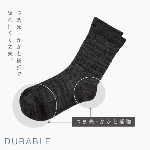 つま先・かかと補強で丈夫。長くお使いいただけます。