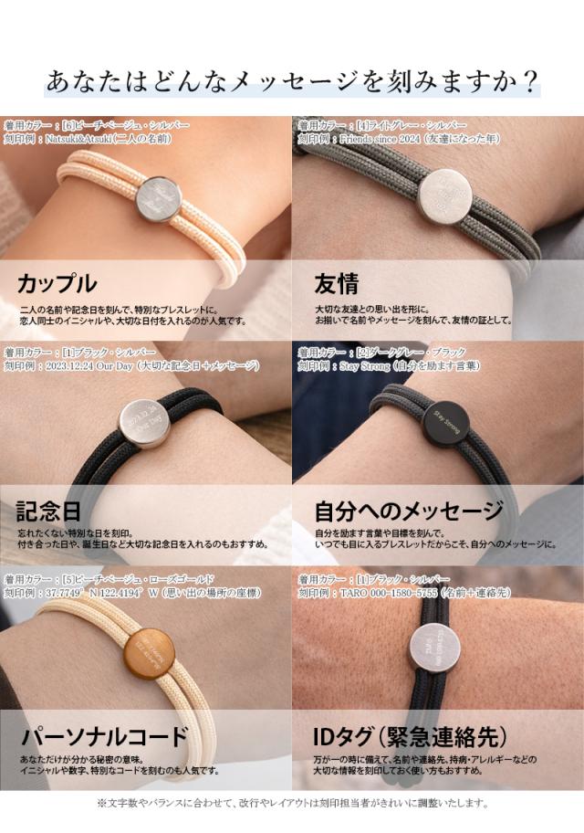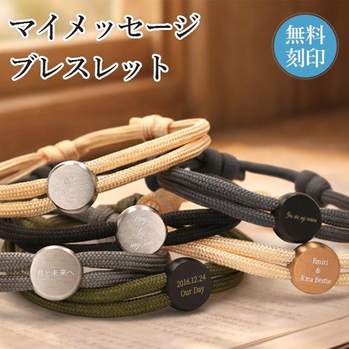 名入れ ブレスレット メッセージ刻印無料 コードブレスレット メンズ レディース ペア 男女兼用 記念日 誕生日 プレゼント カップル お揃い サイズ調整可能 フリーサイズ プレート付きコードブレスレット 調節可能コードブレス