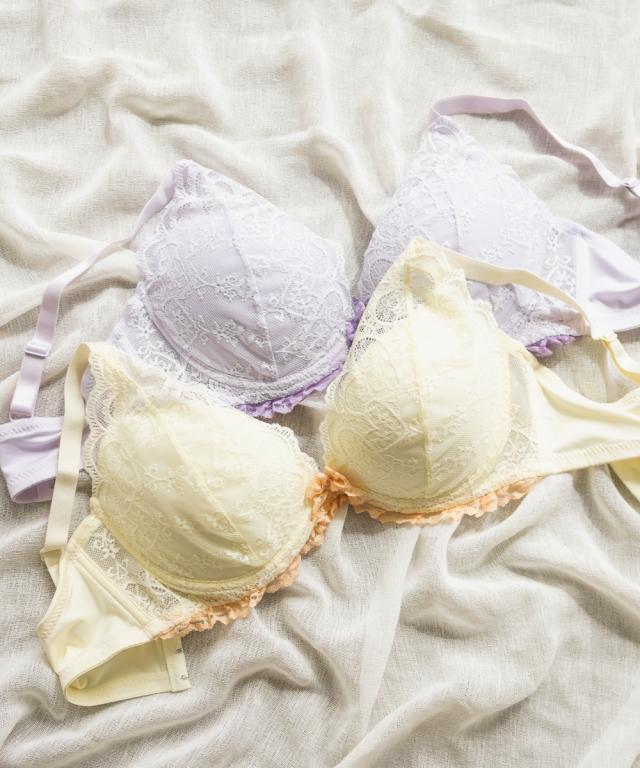 裏地無し、透け感有り、伸縮性有り 【カップタイプ】3/4カップ・モールドカップ(丸みを形成した厚みのあるカップです)、【ホックの数】3段3列、【パット付属】なし、【パットポケット】なし、【ストラップ取外し】不可、【ワイヤー】あり、※タンブル乾燥禁止