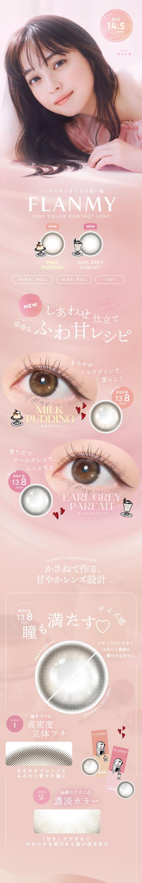 佐々木希さんイメージモデルの大人気ブランド『フランミー』に待望の新色が2色登場でALL10色のラインナップ!!ふんわりフチでナチュラル☆とことん”オトナ可愛さ”を追及したカラコンが誕生しました♪FLANMYなら「こっそり可愛い瞳」が叶う★