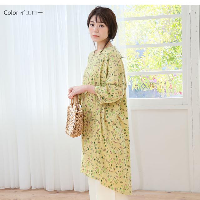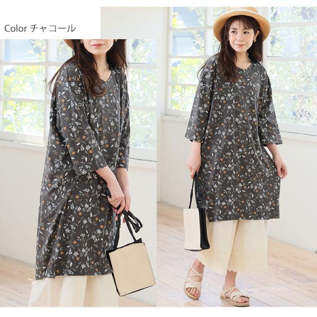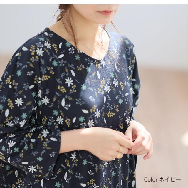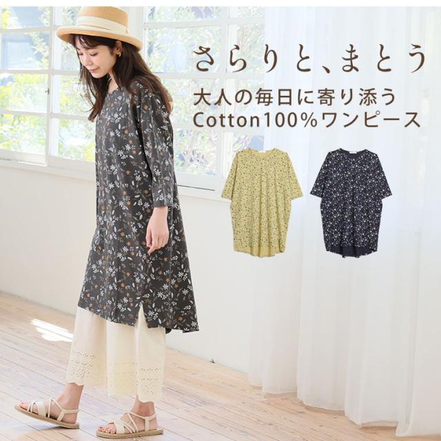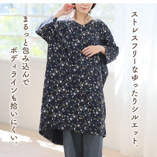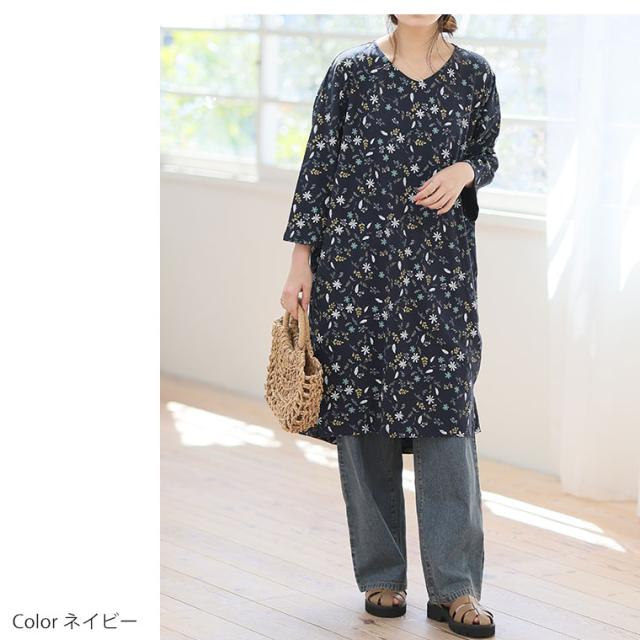 新作 大きいサイズ レディース ワンピース | 綿スラブ 総柄プリント Vネック コクーン ワンピ [862060] LL 3L 4L 5L 6L
