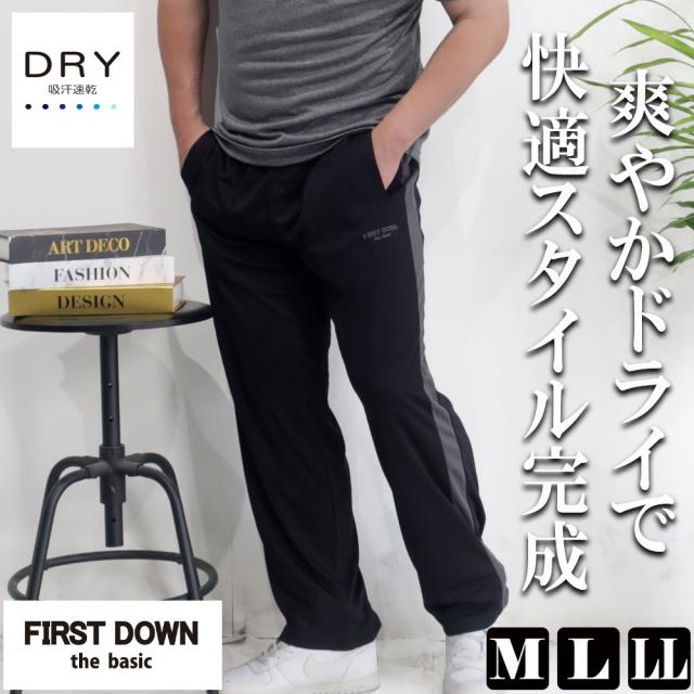 【選べるデザイン】FIRSTDOWN the basic 吸汗速乾 ドライメッシュパンツ メンズ 脇ライン パイピング ホッピングパンツ ロングパンツ M L LL 大きいサイズ対応 接触冷感 軽量 通気性 スポーツ 部屋着 涼しい 夏用 ブラック ネイビー チャコール 10001968