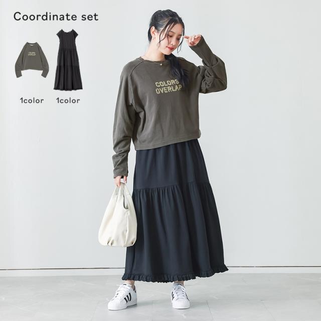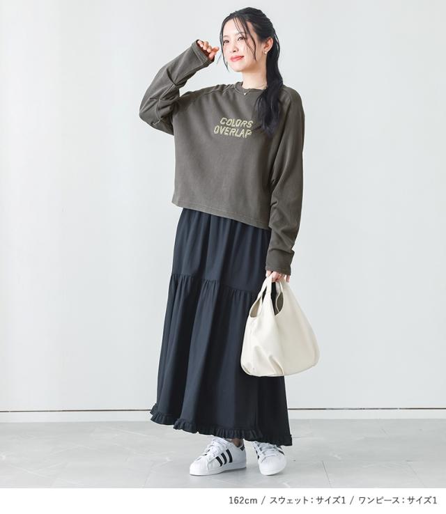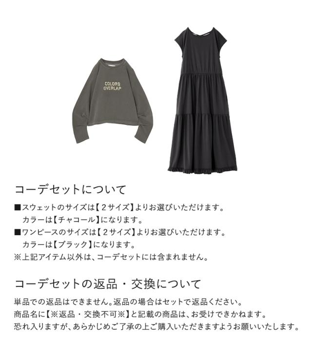 『ピグメントロゴスウェット×汗ジミ防止バックデザインワンピースコーデ2点SET』【メール便不可】【60】[2点コーデセット 2026 レディース スウェット トップス 長袖 トレーナー ワンピース ティアードワンピ 半袖]