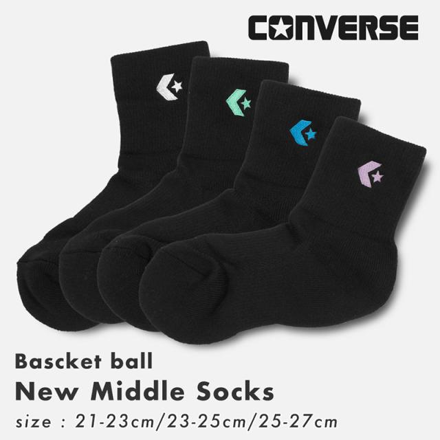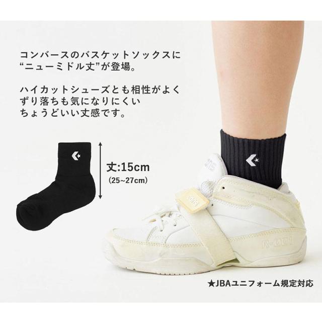 コンバース ニューミドル ソックス ミドルカット バスケット 靴下 バスケ 部活 クラブ 練習 試合 厚手 《レビュー記入でメール便無料》 サポート アンクル ワンポイント スポーツ ジム 抗菌 防臭 : CONVERSE CB151052