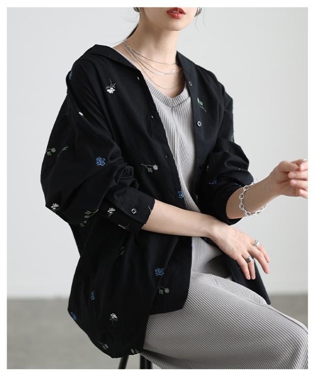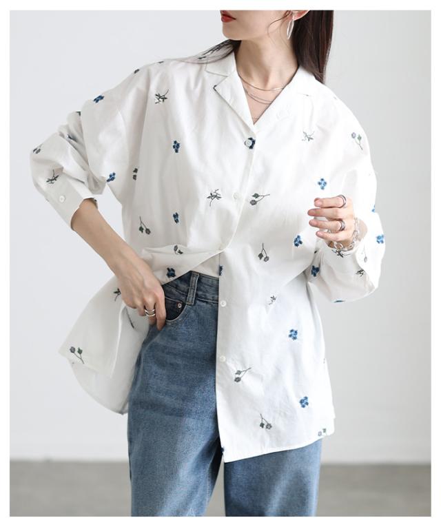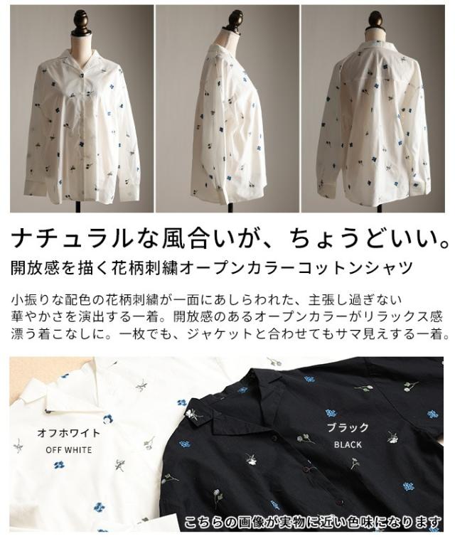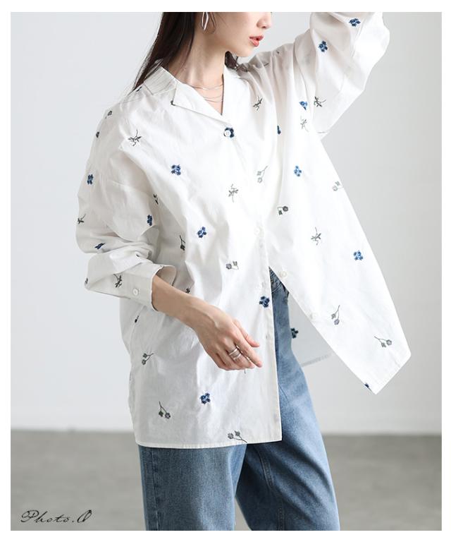 春新作 開放感を描く花柄刺繍オープンカラーコットンシャツ レディース ファッション トップス シャツ ブラウス 花柄 刺繍 ドット オープンカラー 長袖 コットン 30代 40代 50代 60代 アラモード alamode otona 大人 cawaii 可愛い 洋服 かわいい服 aldt-311f3063