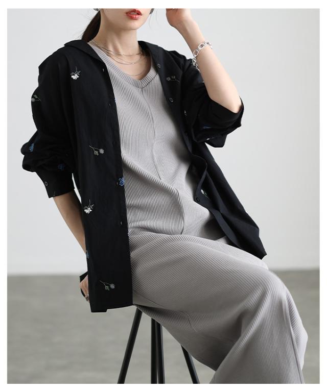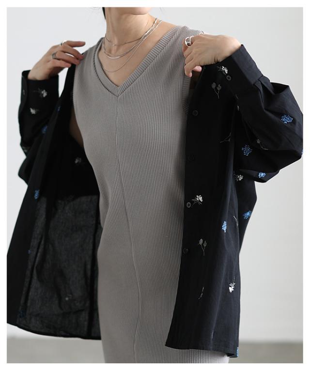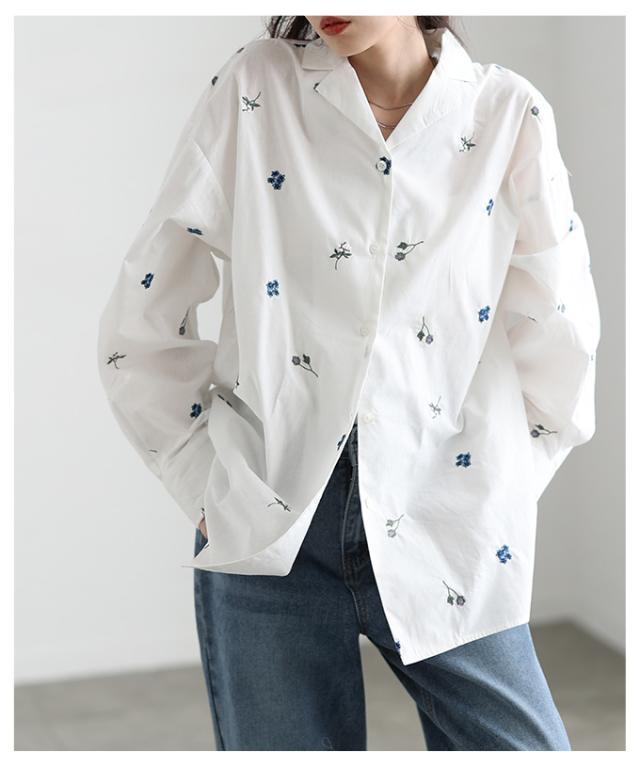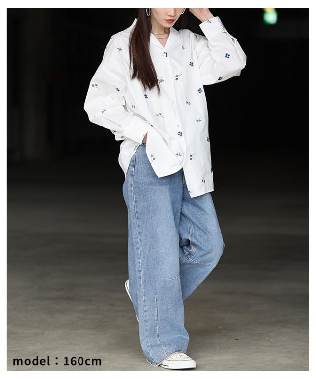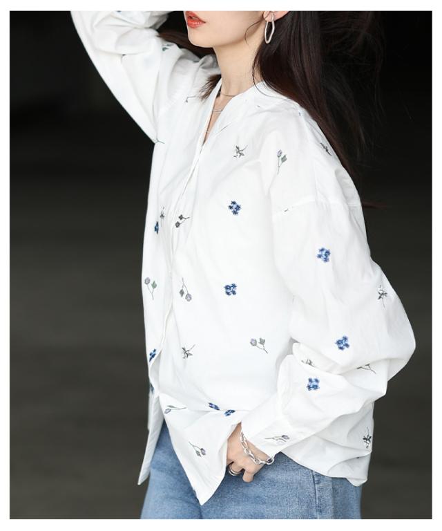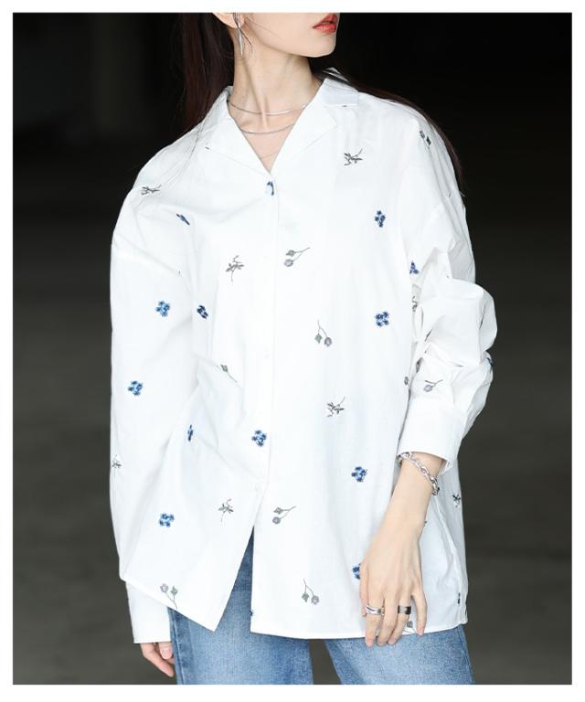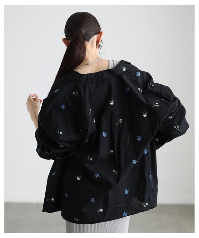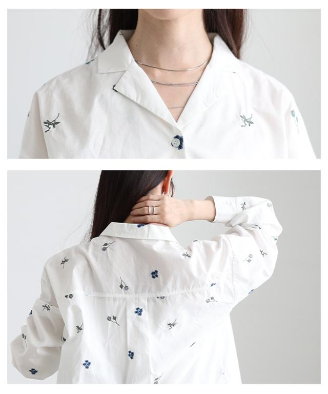 商品名: 花柄刺繍オープンカラーコットンシャツ