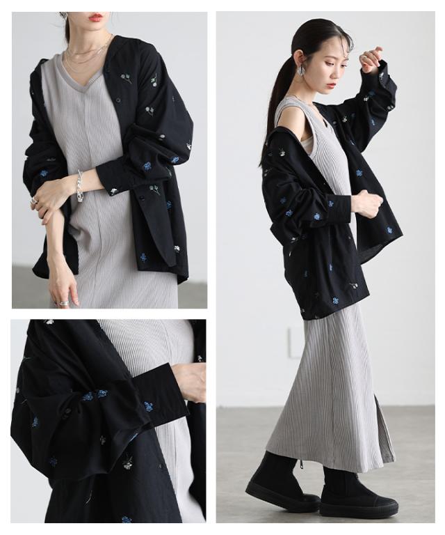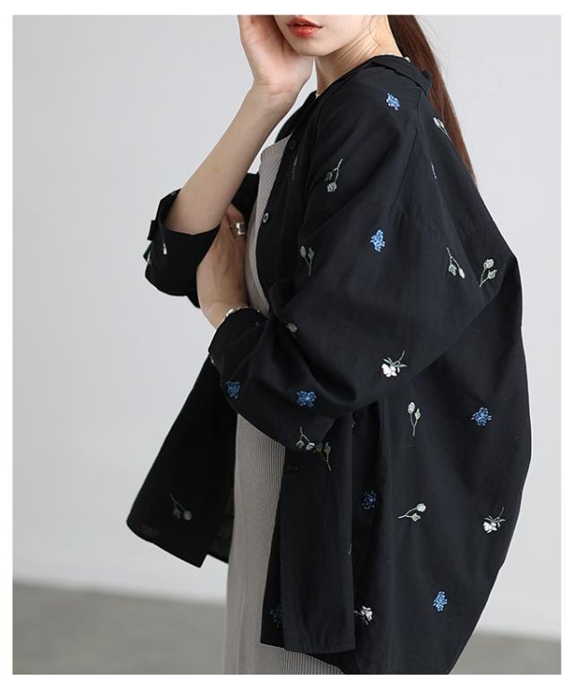 特徴: 花柄 刺繍 配色 ドット オープンカラー カフス ボタン コットン