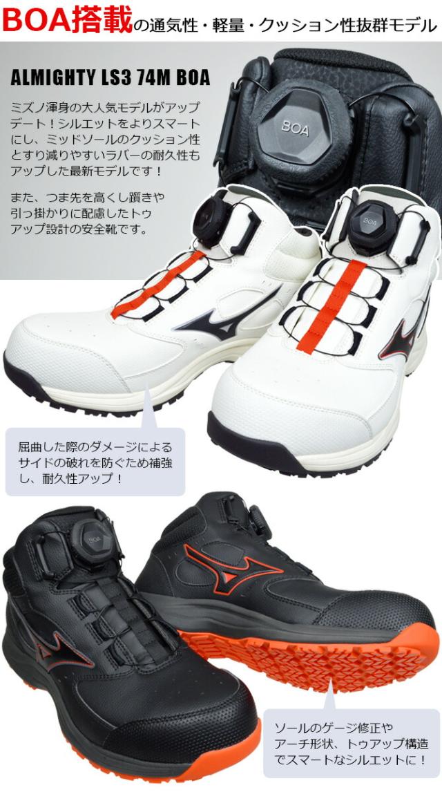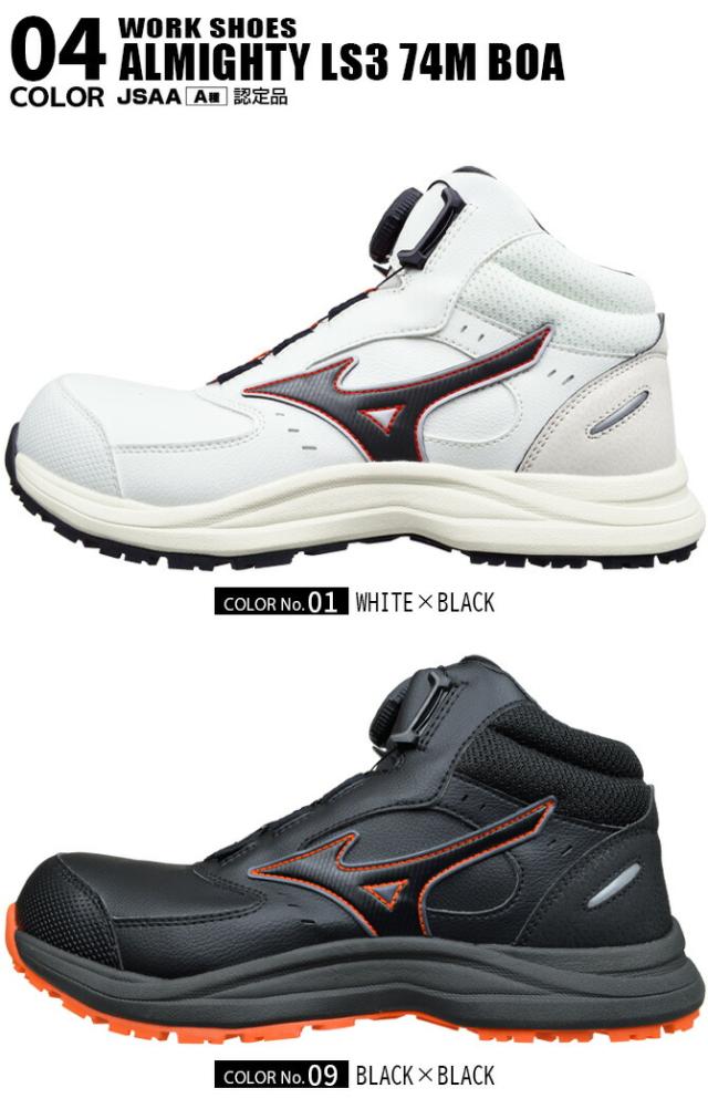 ミズノ 安全靴 スニーカー オールマイティ ALMIGHTY LS III 74M BOA F1GA2603 ダイヤル式 ミッドカット ハイカット MIZUNO メンズ レディース JSAA A種 耐滑 耐油 衝撃吸収