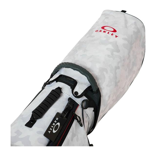オークリーのロゴが大きくアップリケされた軽量スタンドバッグ。1枚パネルのショルダーストラップは、体にフィットして負荷を掛けにくい構造。トップとハンドルはOCTO-STICK成型グリップで持ち運びも便利。ボールなど小物収納も充実。素材は耐久性と軽量性のあるポリエステルを採用。フード、ネームプレート付き。品番:FOS901966