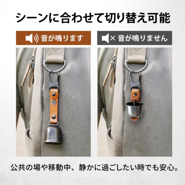 【超強力マグネットで瞬時に消音】 消音機能は、超強力マグネットを採用。建物に入る際や人混みでは、片手でサッと鈴を固定するだけでピタッと音が止まります。