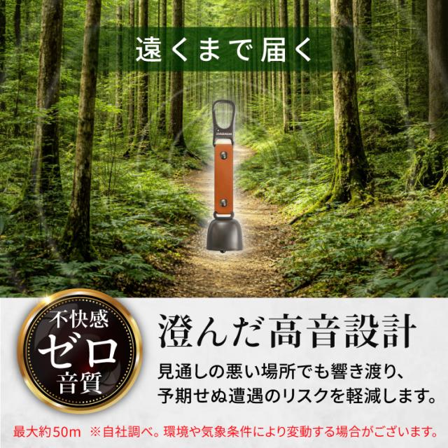 【遠くまで届く澄んだ高音設計】 見通しの悪い山道や騒音のある屋外でも遠くまで響き渡り、予期せぬ遭遇のリスクを軽減します。